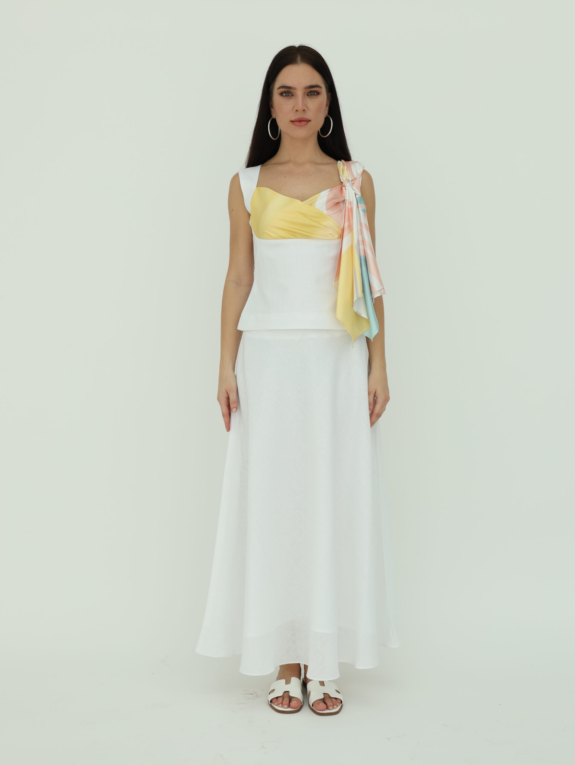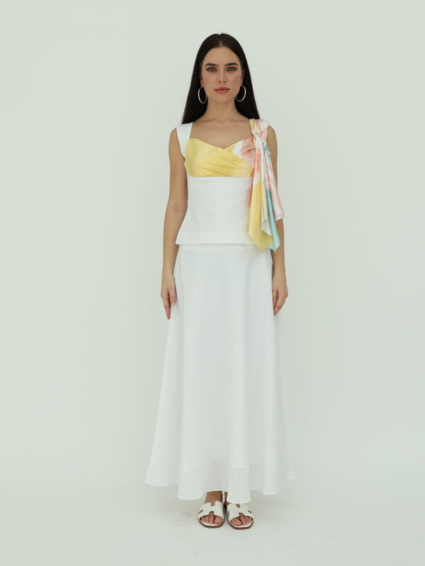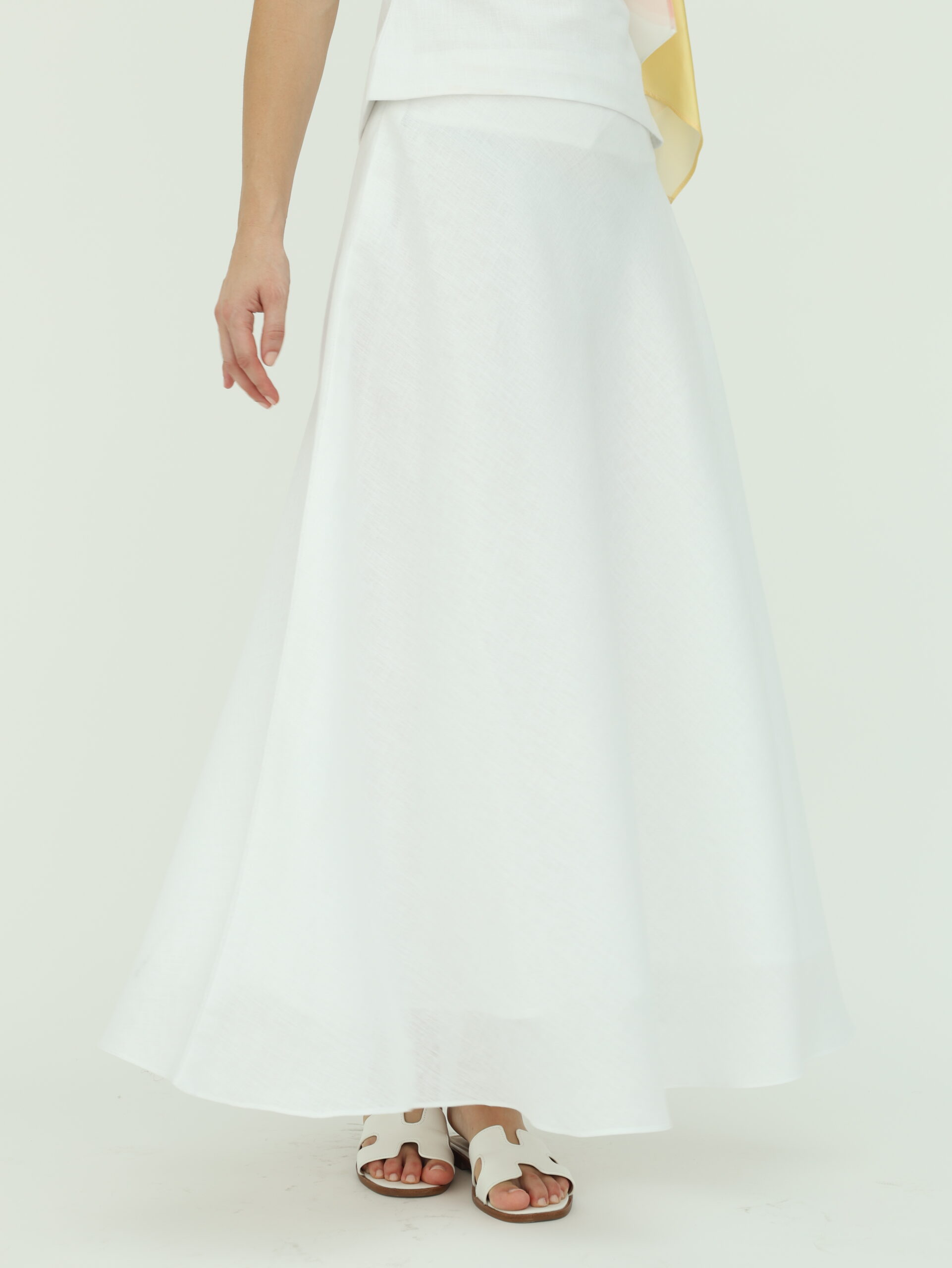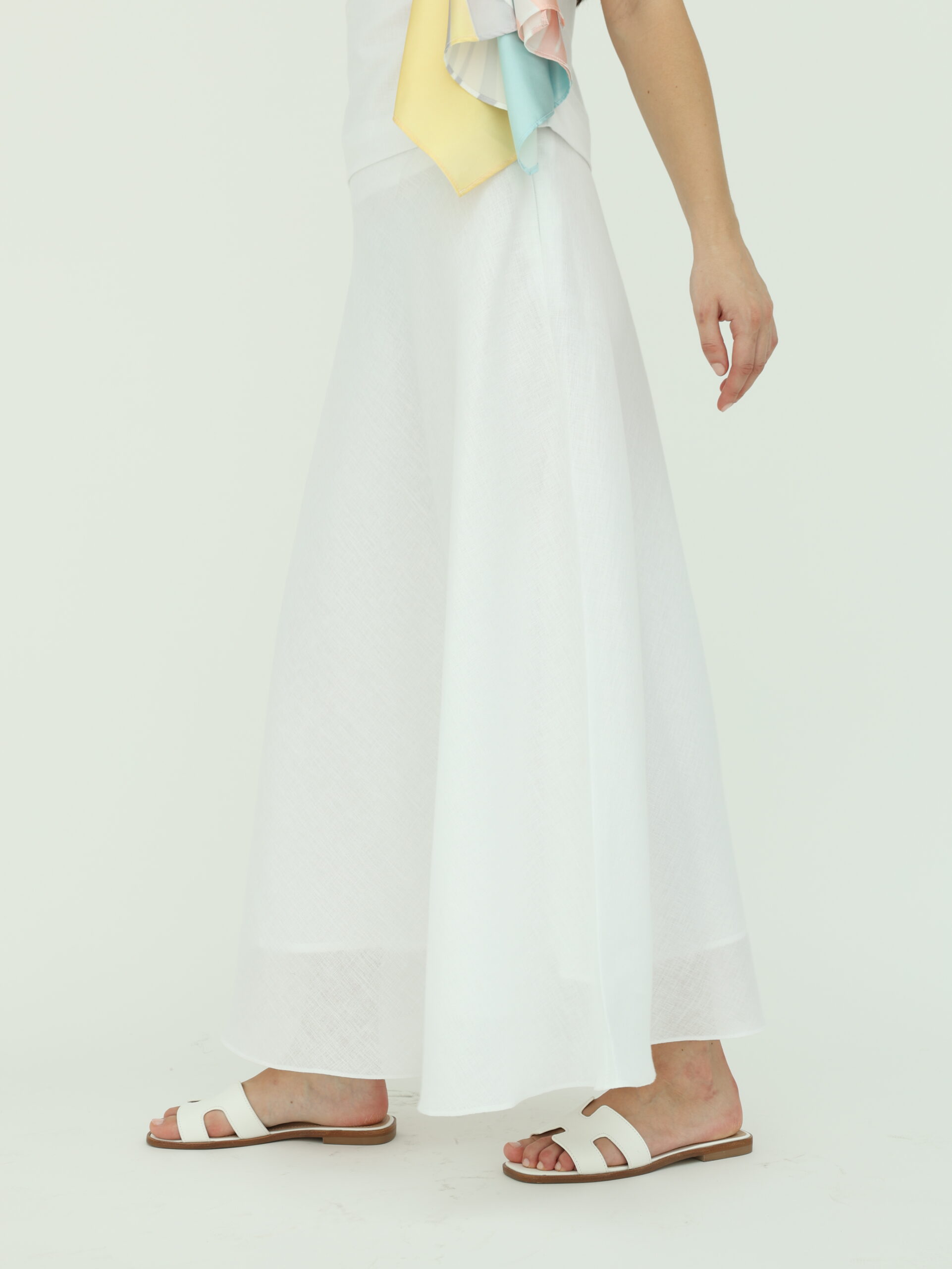 Design details: Flared midi skirt with a smooth, circular drape for an elegant and airy silhouette