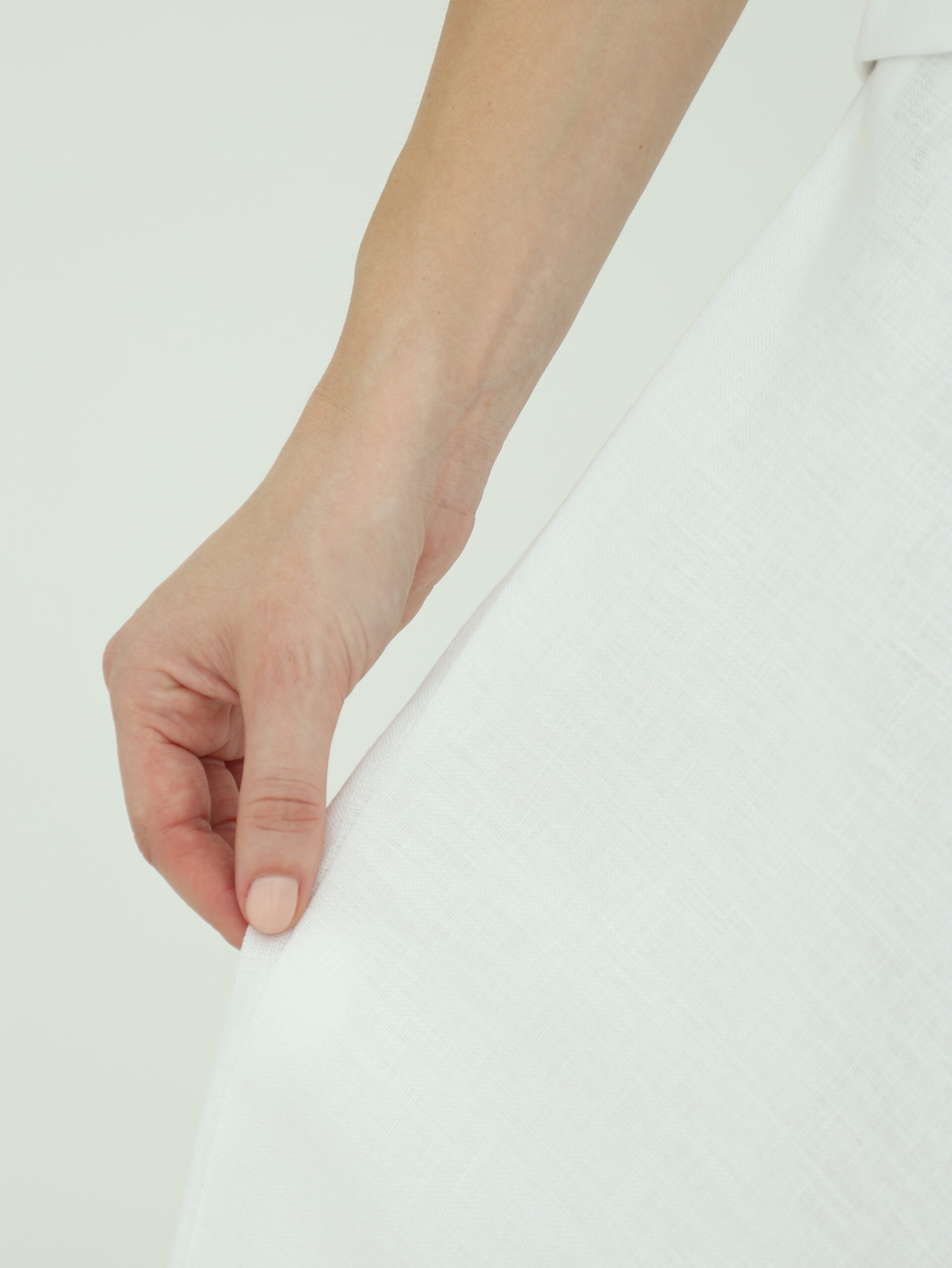 الخامة: لنن فاخر عالي الجودة (80% لنن، 20% قطن)، مع بطانة من الكريب (100% بوليستر)