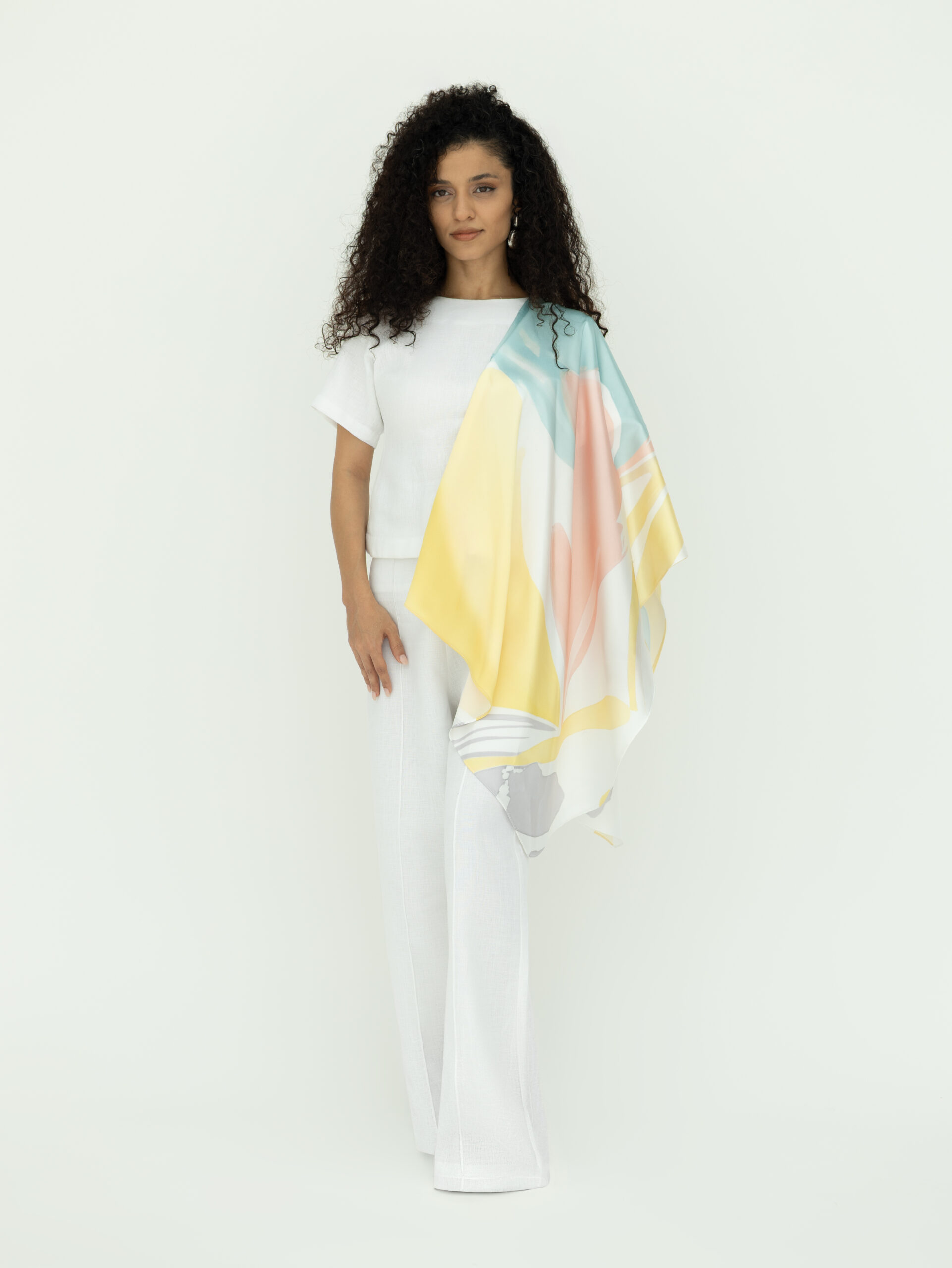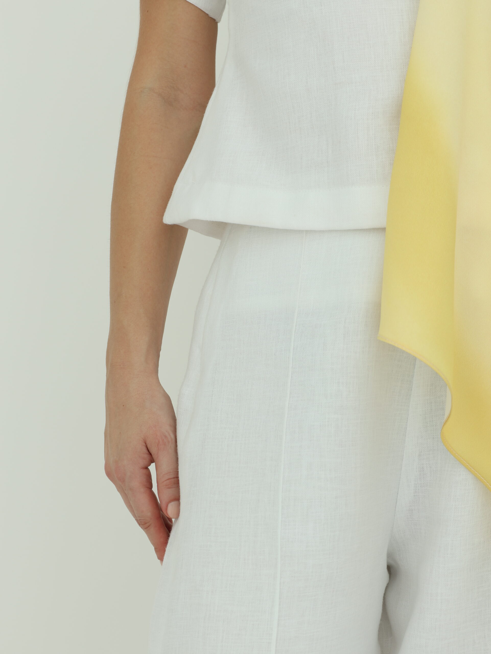 الخامة: لنن فاخر عالي الجودة (80% لنن، 20% قطن)، مع بطانة من الكريب (100% بوليستر)